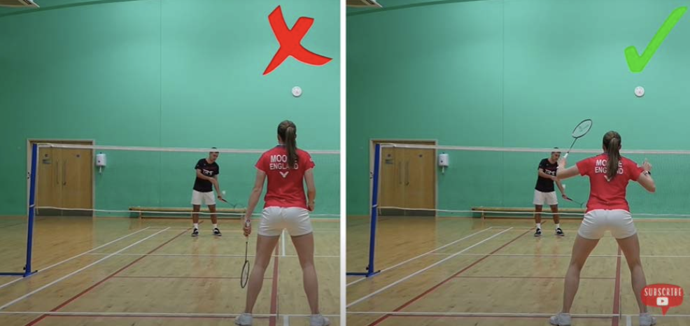 Doing this means you don’t waste any time lifting your arm up before playing your shot, and this therefore enables you to take the shuttle earlier. This is quite an interesting topic though, as for some people it may be beneficial to have their racket a little bit lower. We discussed this on a YouTube video here.