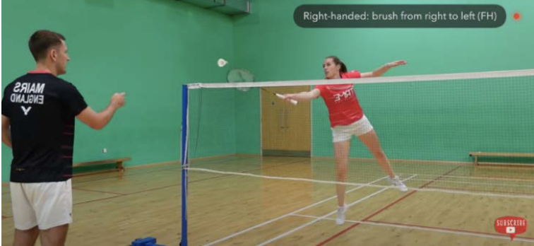 Getting over the top of the shuttle is really important to ensure it doesn’t go out the back of the court! To do this, you will need to use your wrist to snap over the top of the shuttle as shown in the picture below: