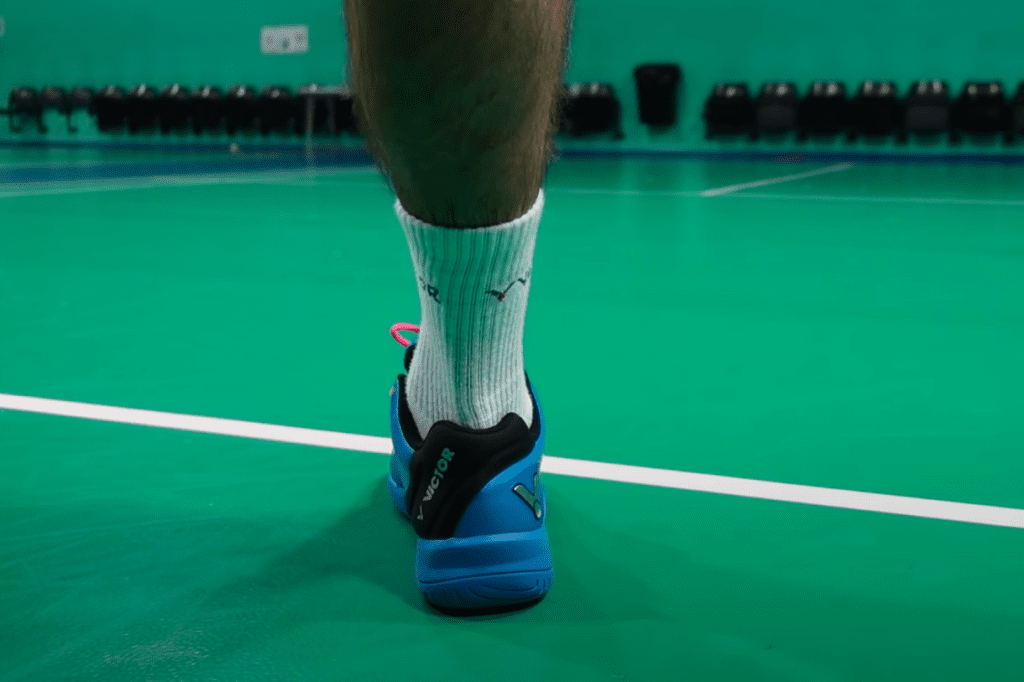If you have your foot completely straight, or with too much angle to the side, it will decrease the amount of power you can generate when pushing off, therefore taking you more time to reach the shuttle.
