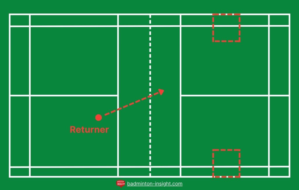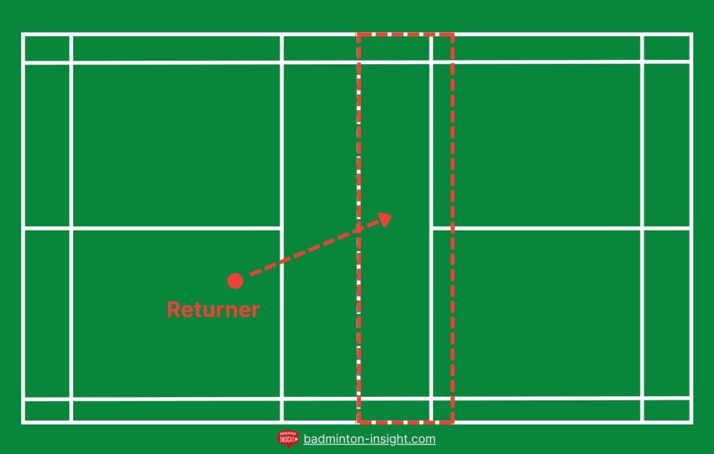 This return is when you place the shuttle in the space in-between the server and their partner, to create uncertainty over who’s shot it is. It can only be done if your opponent serves to the T or to your body as it’s really hard to do if they serve across you or out wide!