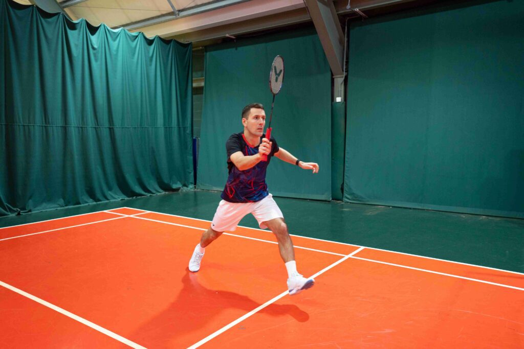 To take the shuttle earlier and increase your chances of playing a better shot, you should stand as close to the service line as possible. Many people will surprise themselves with how close they can stand whilst still being able to get the flick back. Also, if you know your opponent can’t play a flick serve then this would be another reason the move further forward!