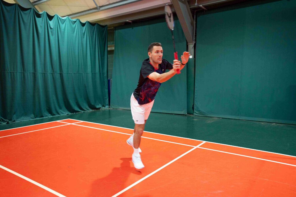 We’d recommend bringing your racket leg through for this so you can take the shuttle as early as possible and commit to the shot. This means you’re more likely to get the shuttle travelling in a downwards direction, putting your opponents under more pressure.