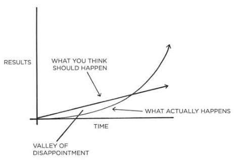 However, people (and we are all subject to this), don’t see results quick enough so they stop implementing these good habits. They then fall back into the old ways, and not improving the life that they envisioned that led to creating that habit in the first place. This is the “valley of disappointment”.