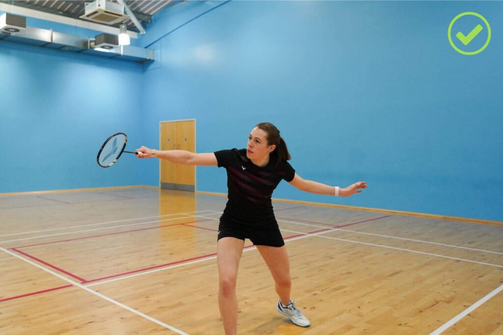This type of advanced lift will have a much bigger follow-through swing as you want to hit the shuttle high up into the air. To be able to hit it high, you need to come under the shuttle more.